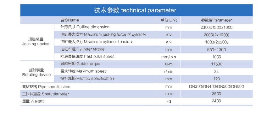 (3)设备使用门槛低:全套产品简化操作,对操作员技能要求不高,整个顶进过程水平直线度±30mm,有效地降低施工成本,大大提高施工效率;
